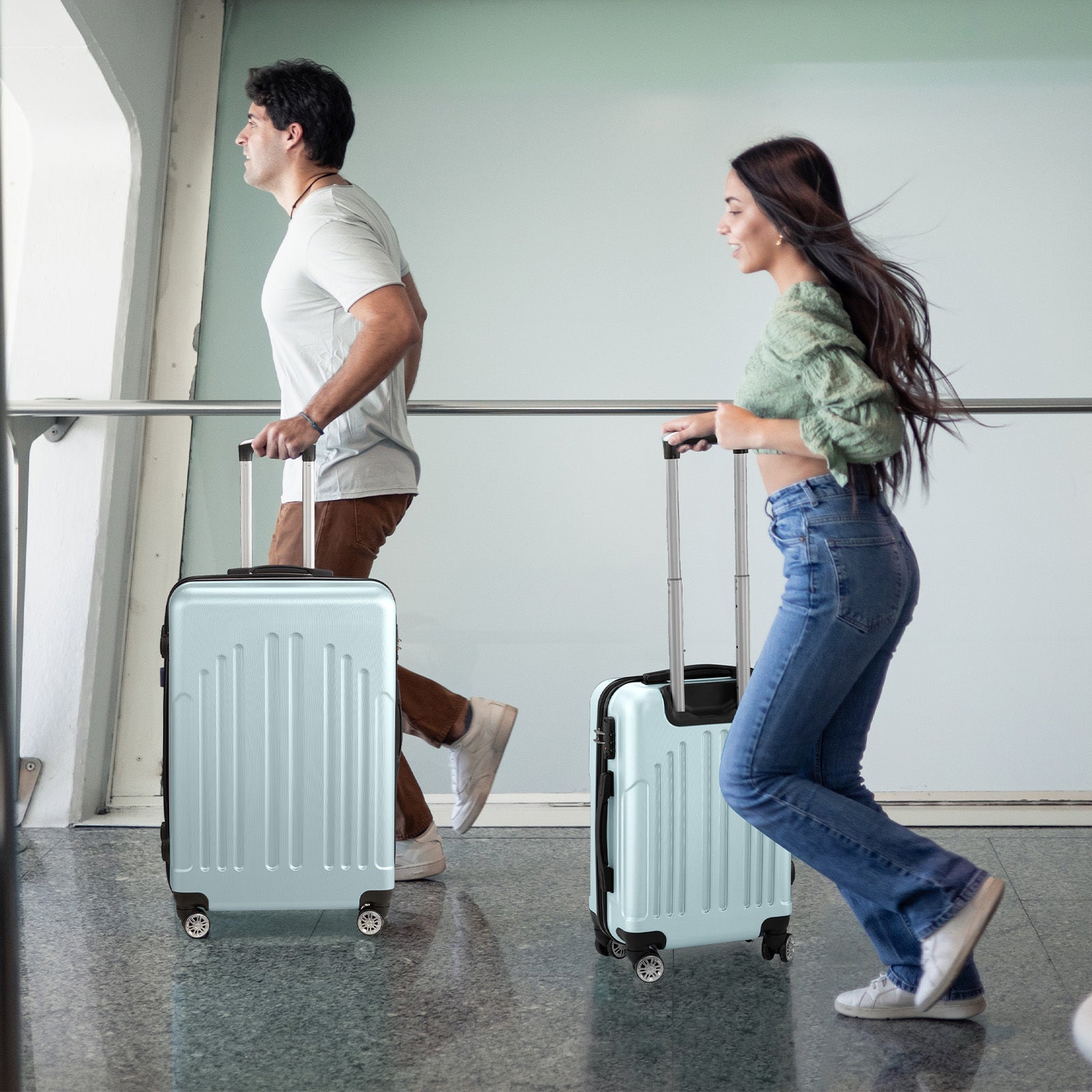 1. Sturdy Materials: The luggage setis made of ABS+PC hardshell material. It's durable, lightweight, and has a full glossy textured finish. It resists compression, scratches, and water. It's also lightweight and easy to clean, making it a practical choice for all your travel needs