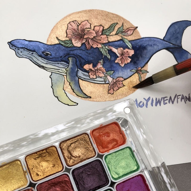 Watercolor Traditional Chinese Painting Fine Brush Calligraphy Wrapped Flower Nail Art Solid Gold Powder